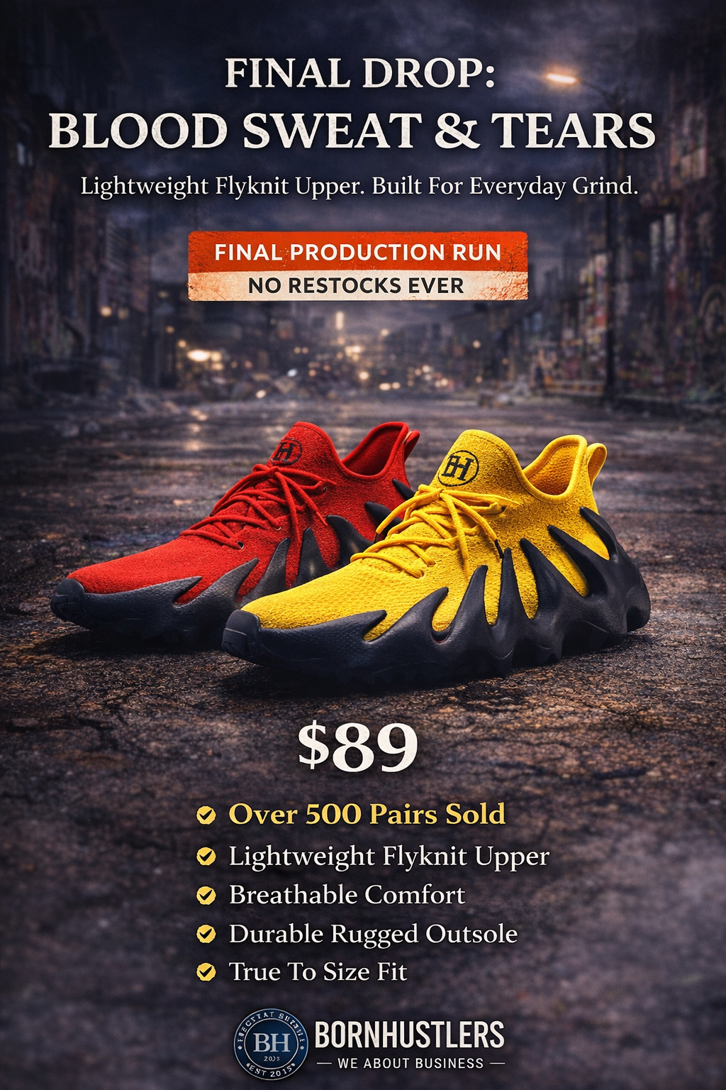 Built from the ground up. Every step is Blood, Sweat and Hustle. Has Full rubber sole. Flyknit Uppers. Ultra Comfortable .